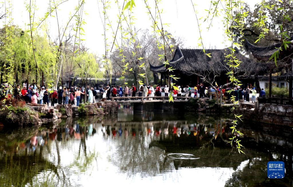 3月15日,游客在江蘇省蘇州市古典園林拙政園觀(guān)光游玩。