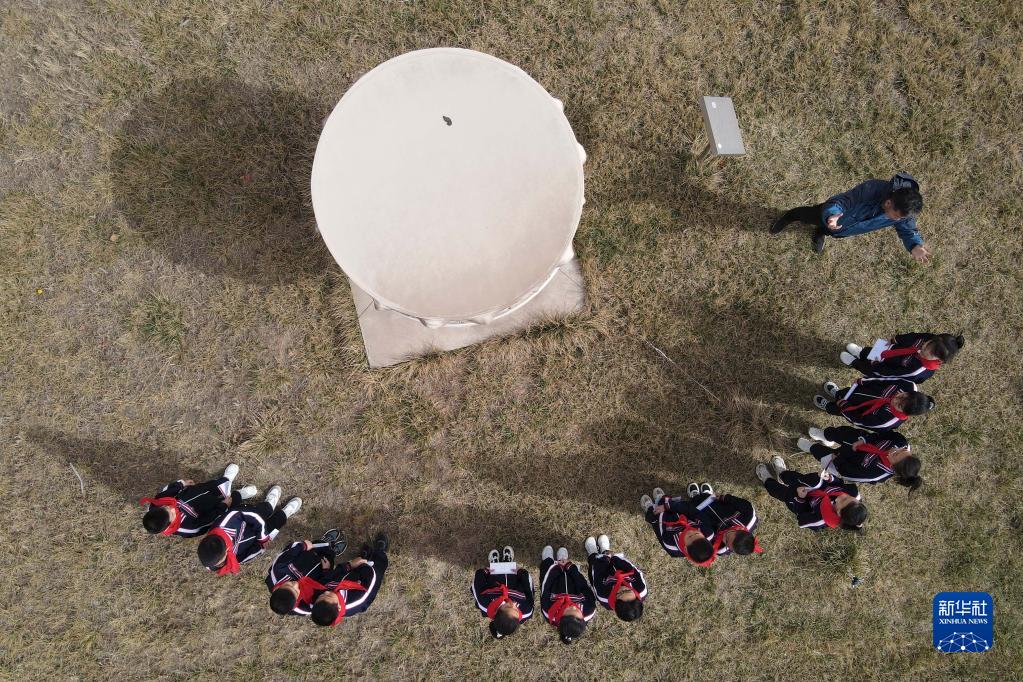 3月22日,河北省邢臺市第八中學(xué)學(xué)生在邢臺市氣象站了解氣象觀(guān)測設備知識(無(wú)人機照片)。
