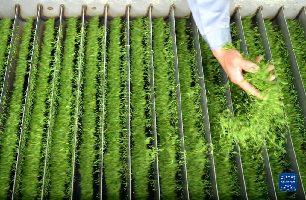 3月22日,湖北省宣恩縣椒園鎮一茶廠(chǎng)的工人在加工茶葉。