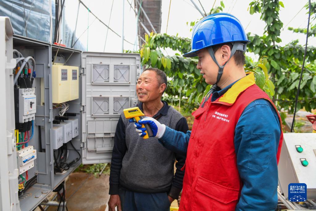 3月22日,國網(wǎng)淄博供電公司沂源彩虹黨員服務(wù)隊為燕崖村果農齊立忠檢修大棚供電設施。