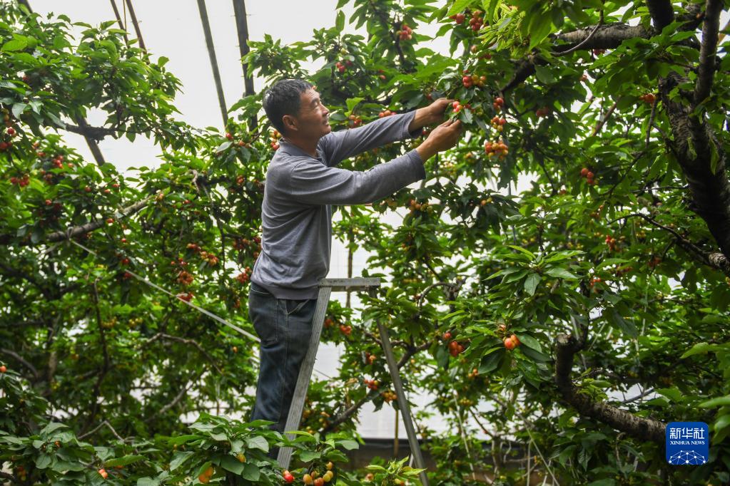 3月22日,燕崖鎮燕崖村果農李長(cháng)生在采摘大棚櫻桃。