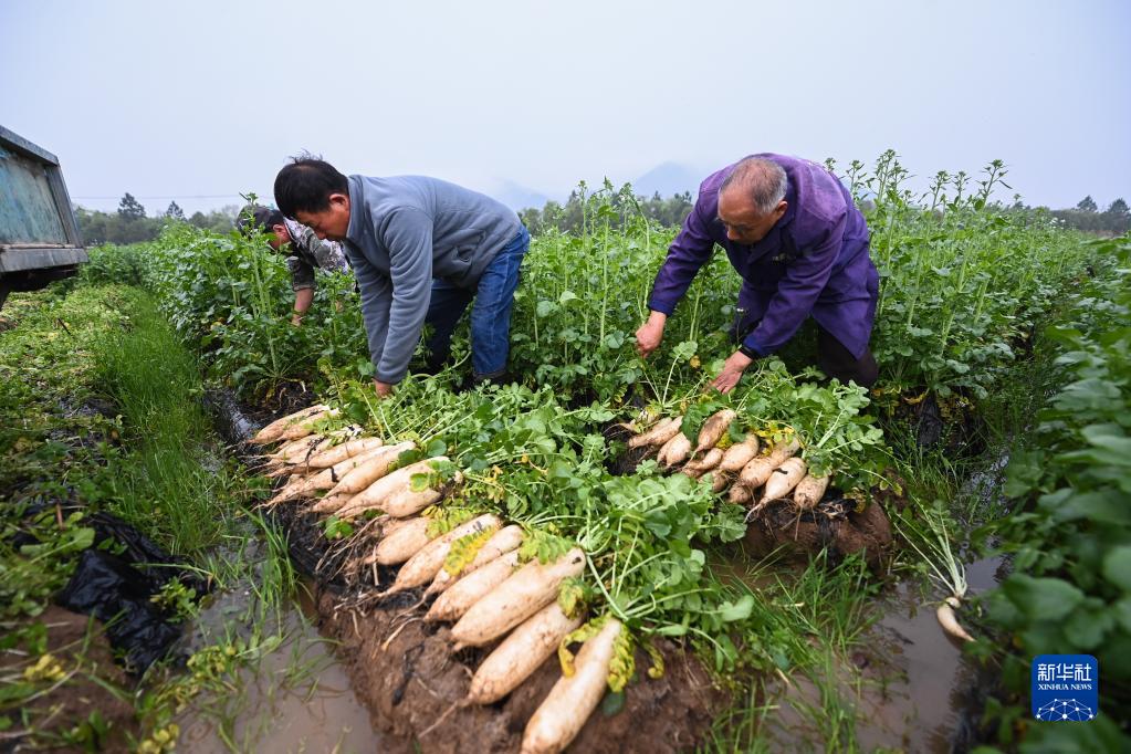 近日,在浙江省諸暨市姚江鎮國家級農業(yè)產(chǎn)業(yè)園,蔬菜基地里的蘿卜進(jìn)入春季豐收季,種植戶(hù)忙著(zhù)采摘、清洗、裝包,準備運往周邊縣市農貿批發(fā)市場(chǎng)。該基地是姚江鎮通過(guò)招引鄉賢回歸建立的項目,共占地100余畝,旨在拓寬當地農產(chǎn)品銷(xiāo)售渠道,帶動(dòng)周邊農戶(hù)增收。在蘿卜收獲結束后,這里將繼續栽種毛豆等農作物。