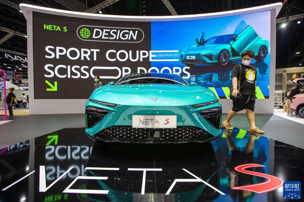 3月22日,觀(guān)眾在泰國曼谷國際車(chē)展上參觀(guān)哪吒S汽車(chē)。