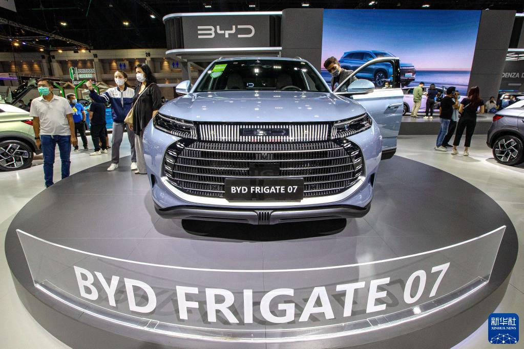 3月22日,觀(guān)眾在泰國曼谷國際車(chē)展上參觀(guān)比亞迪護衛艦07汽車(chē)。