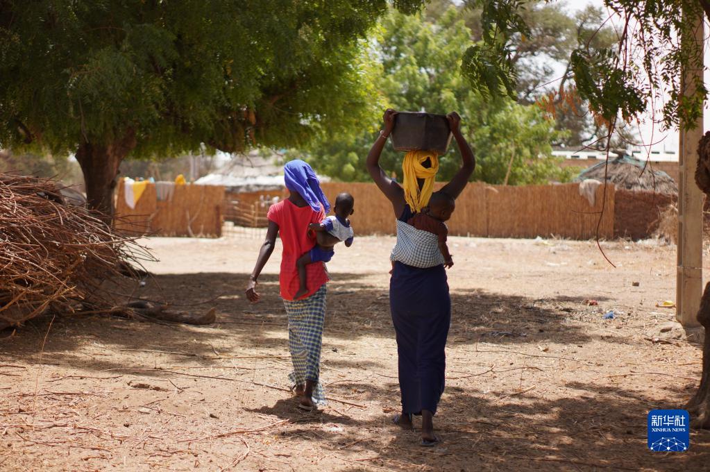 3月20日,在塞內加爾久爾貝勒區的泰內富勒村,村民將剛從公共取水點(diǎn)取到的水運回家。