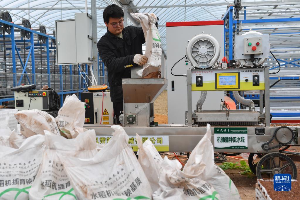 春耕備耕時(shí)節,在湖南省湘潭市雨湖區姜畬現代農業(yè)示范園里,當地農民通過(guò)技術(shù)培訓,運用5G智慧農業(yè)系統、水稻精量育秧機、智能水肥一體化系統、循環(huán)運動(dòng)式育秧機、農業(yè)機器人等智能化系統和設備進(jìn)行育苗,有效提高了勞動(dòng)效率和種苗質(zhì)量,助力春耕生產(chǎn)。