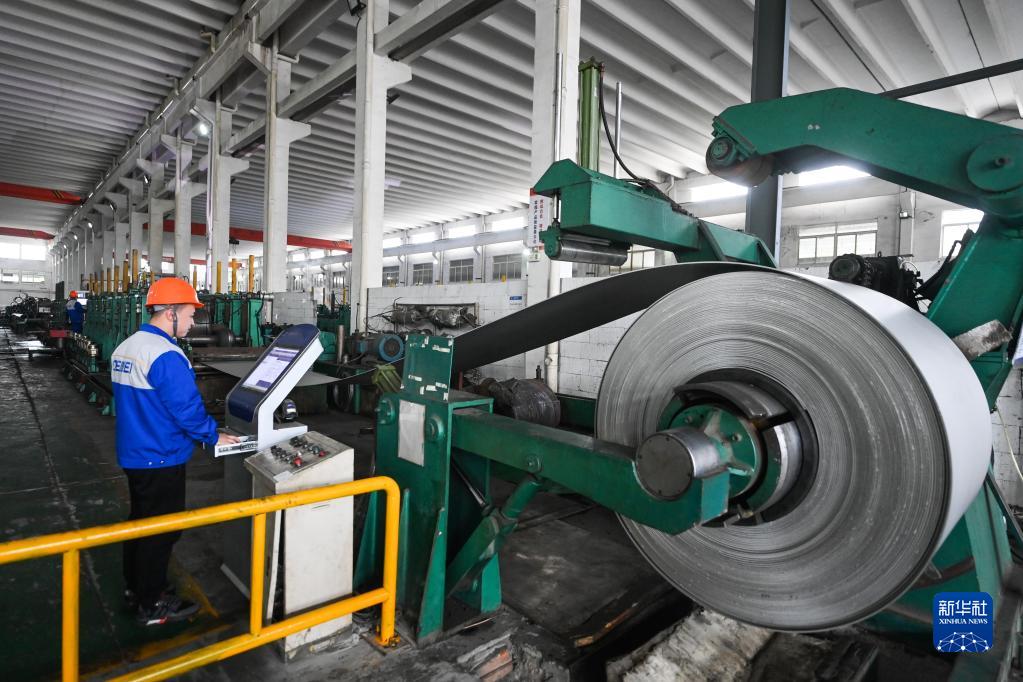 在位于嘉興市的浙江德威不銹鋼管業(yè)股份有限公司連續機組焊管車(chē)間內,產(chǎn)線(xiàn)技術(shù)員在操作MES(生產(chǎn)管理系統)(3月23日攝)。