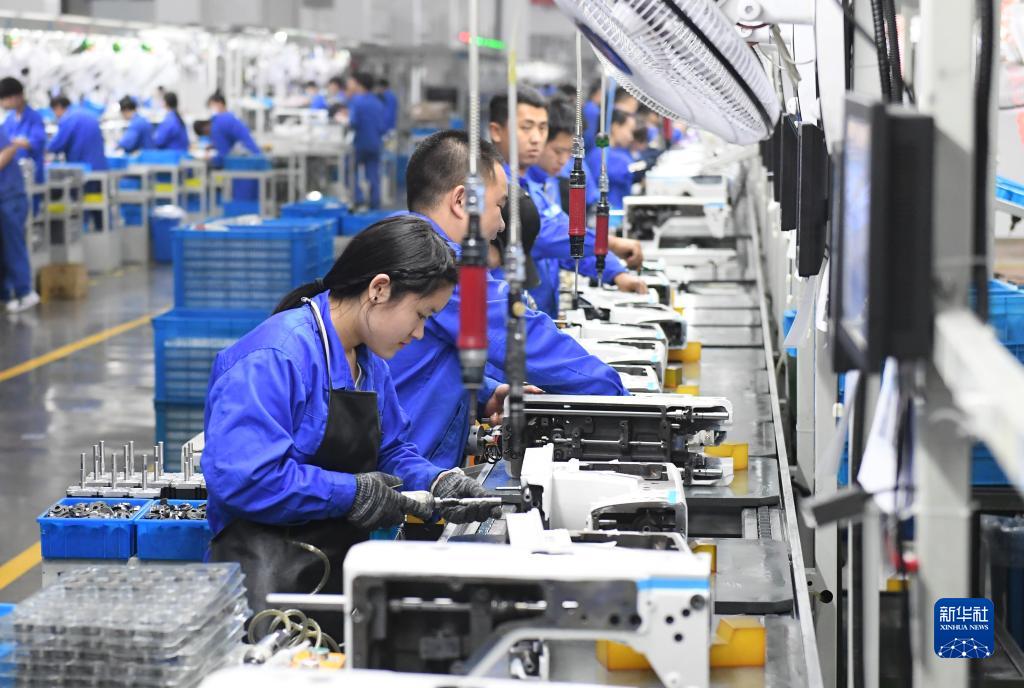 在位于臺州市的杰克科技股份有限公司,工作人員在裝配車(chē)間裝配縫紉機(3月23日攝)。該公司作為全球縫制設備行業(yè)產(chǎn)銷(xiāo)規模最大的企業(yè)之一,開(kāi)年以來(lái)訂單保持增長(cháng)勢頭。
