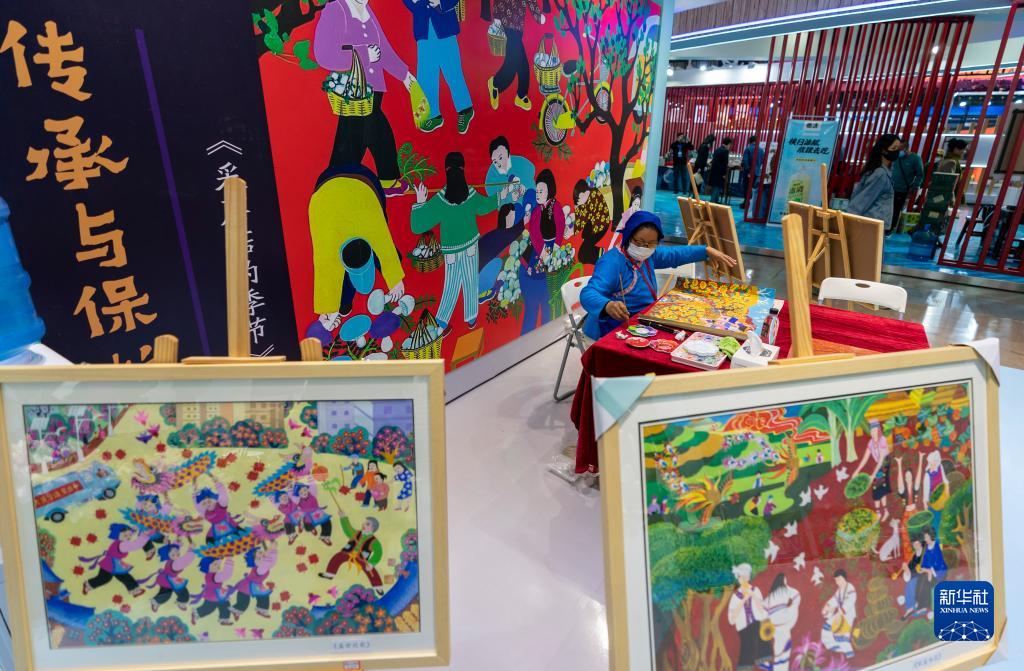 3月24日,農民畫(huà)家劉瓊麗帶著(zhù)自己的作品在首屆云南昆明(國際)版權博覽會(huì )上。