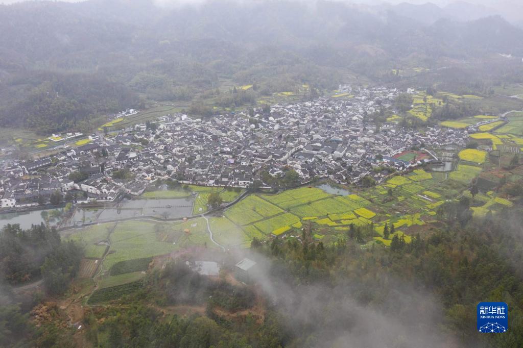 仲春時(shí)節,細雨如煙,安徽省黃山市黟縣處處春意盎然,田園花海與鱗次櫛比的徽派建筑相映成趣,游人徜徉其間,感受詩(shī)情畫(huà)意的生態(tài)鄉村。