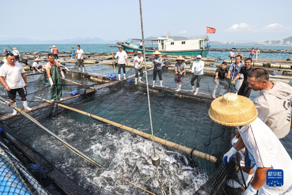 3月24日,在萬(wàn)寧大洲島水域,漁民協(xié)助日本籍漁船裝運章雄魚(yú)苗。