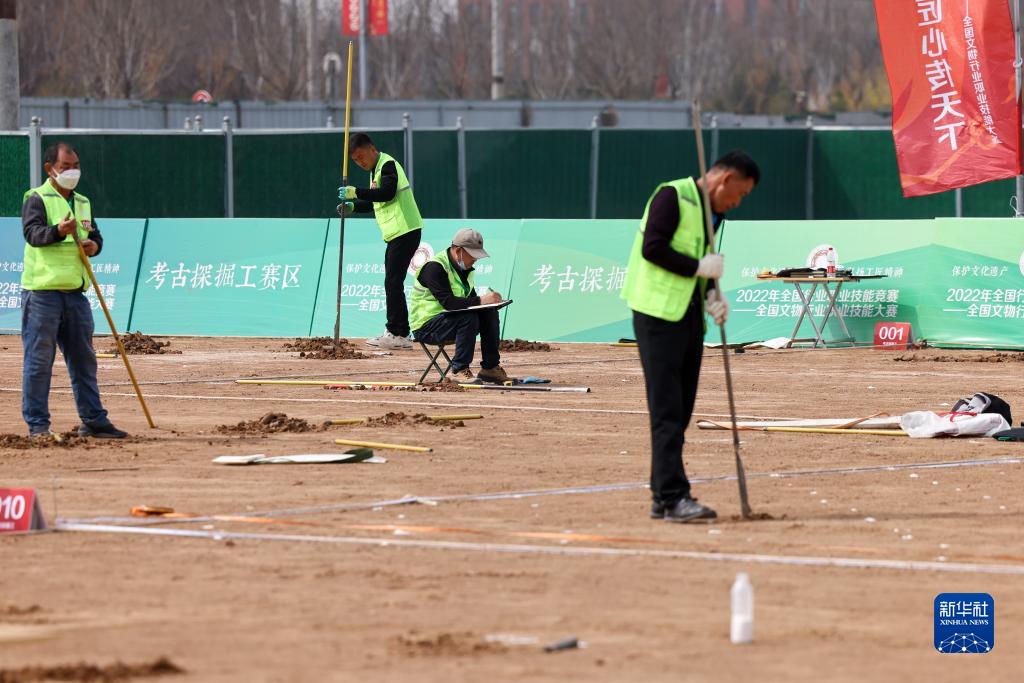 3月25日,參加考古探掘工比賽項目的選手在現場(chǎng)進(jìn)行鉆探。
