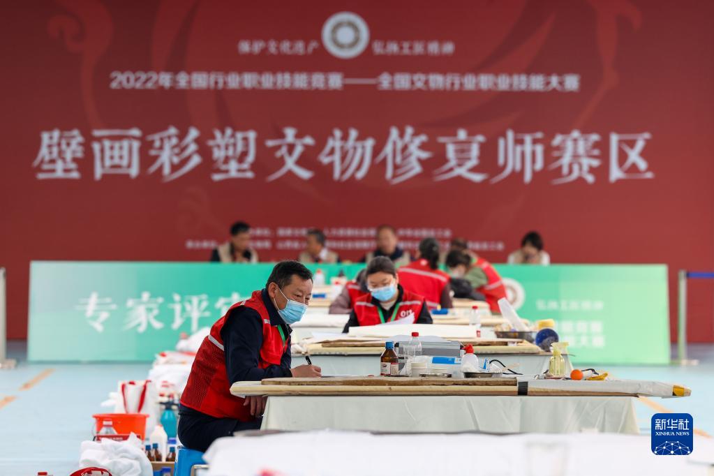3月25日,選手參加壁畫(huà)彩塑文物修復師比賽項目。