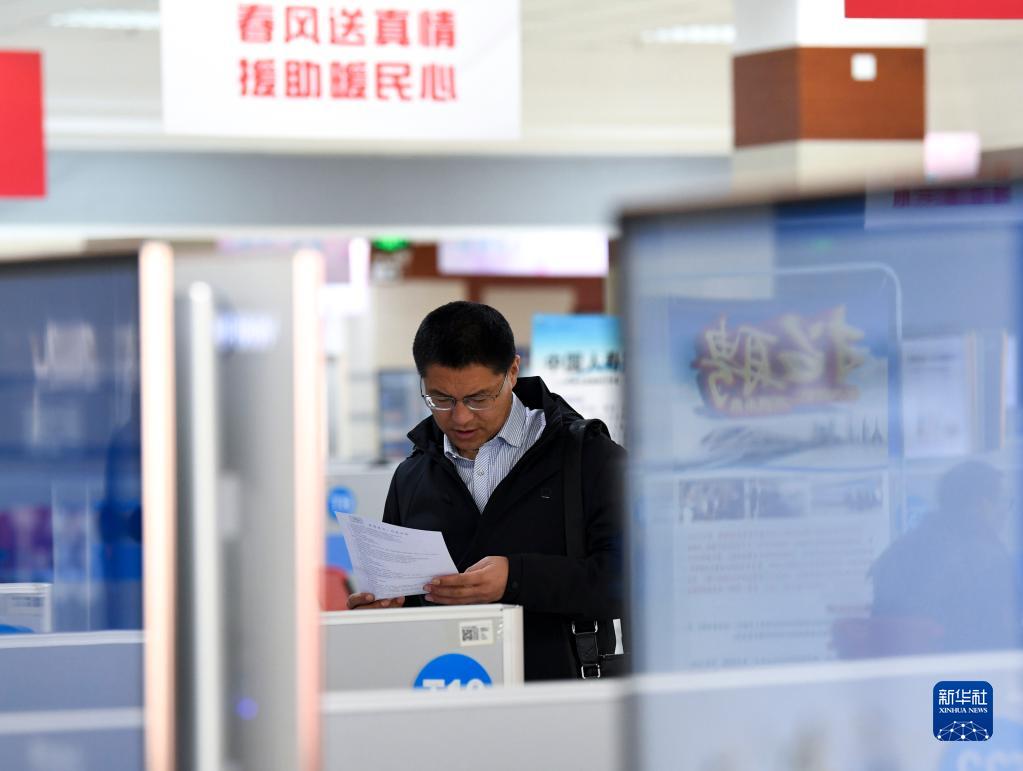 3月25日,求職者在招聘會(huì )現場(chǎng)查看招聘信息。