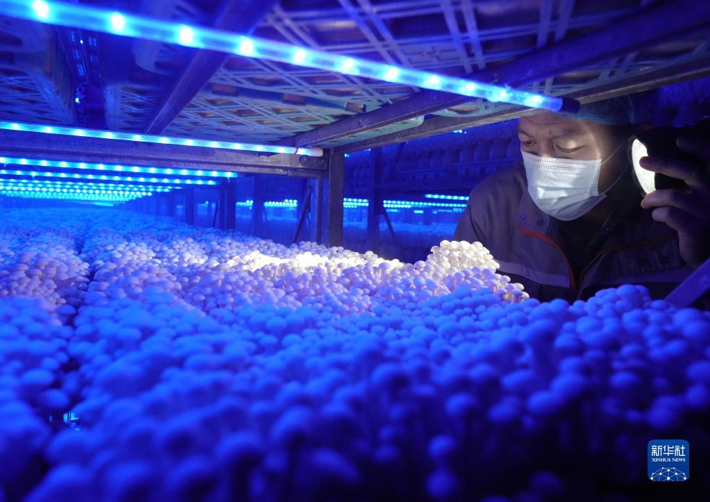 3月25日,河北省昌黎縣大蒲河鎮一家食用菌企業(yè)的工人在食用菌培育車(chē)間察看白玉菇的生長(cháng)情況。