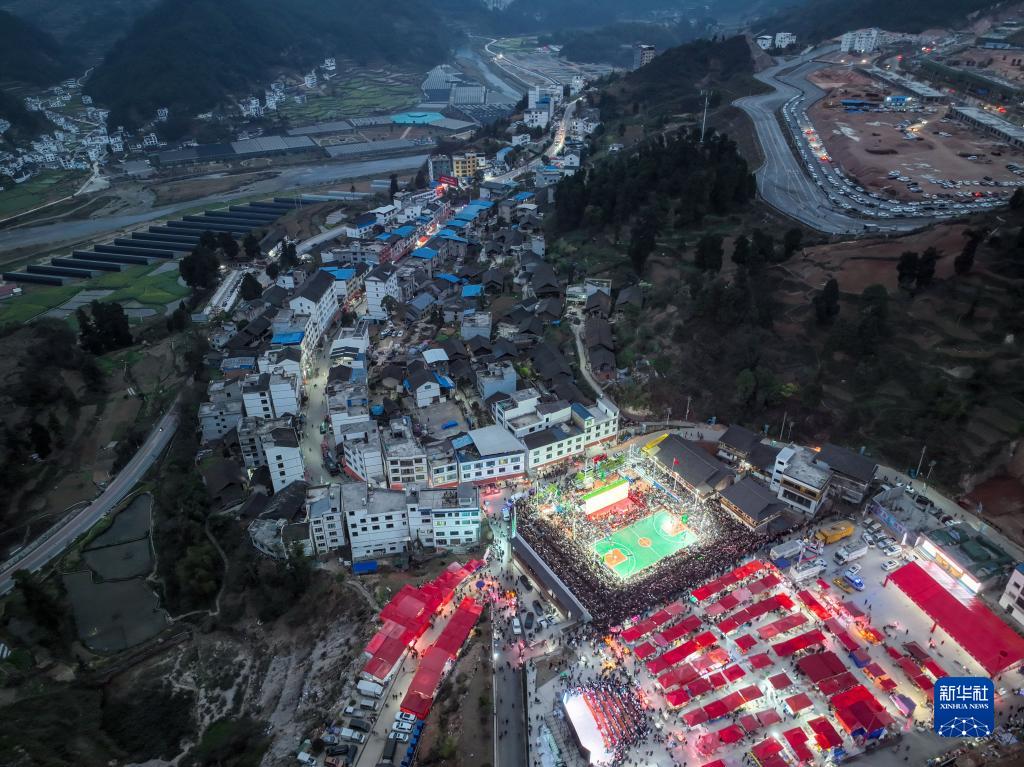 這是“村BA”比賽開(kāi)始前的臺盤(pán)村全景(3月26日攝,無(wú)人機照片)。