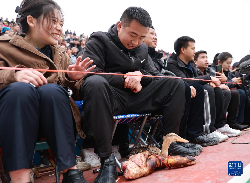 3月26日,在賽前的投籃游戲中,豬腿、鴨子等作為獎品發(fā)給獲勝者。