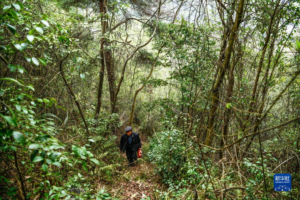 管水員陳光明前往貴定縣盤(pán)江鎮馬場(chǎng)河村管護水源途中(3月23日攝)。