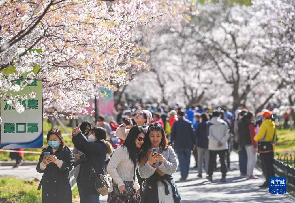 目前,北京玉淵潭公園的櫻花進(jìn)入最佳觀(guān)賞期,盛開(kāi)的櫻花如堆云疊雪,美如畫(huà)卷。
