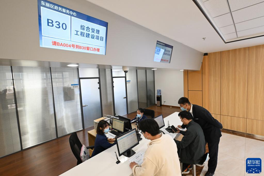 3月27日,在天津市東麗區政務(wù)服務(wù)中心,申報人員進(jìn)行“填空式”項目申報。
