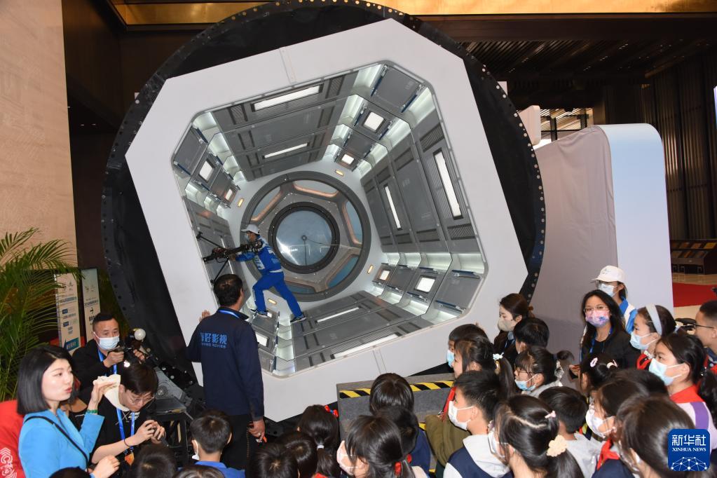 3月27日,小學(xué)生在觀(guān)看“流浪地球”太空艙演示項目。
