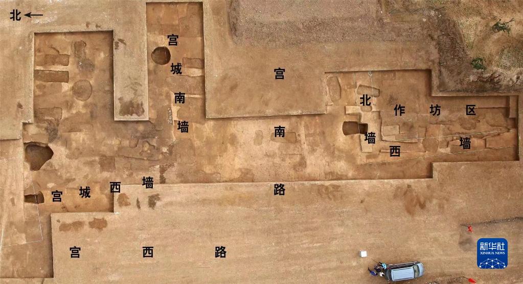 河南偃師二里頭都邑8號基址、宮城西南與作坊區西北部航拍(資料照片)。