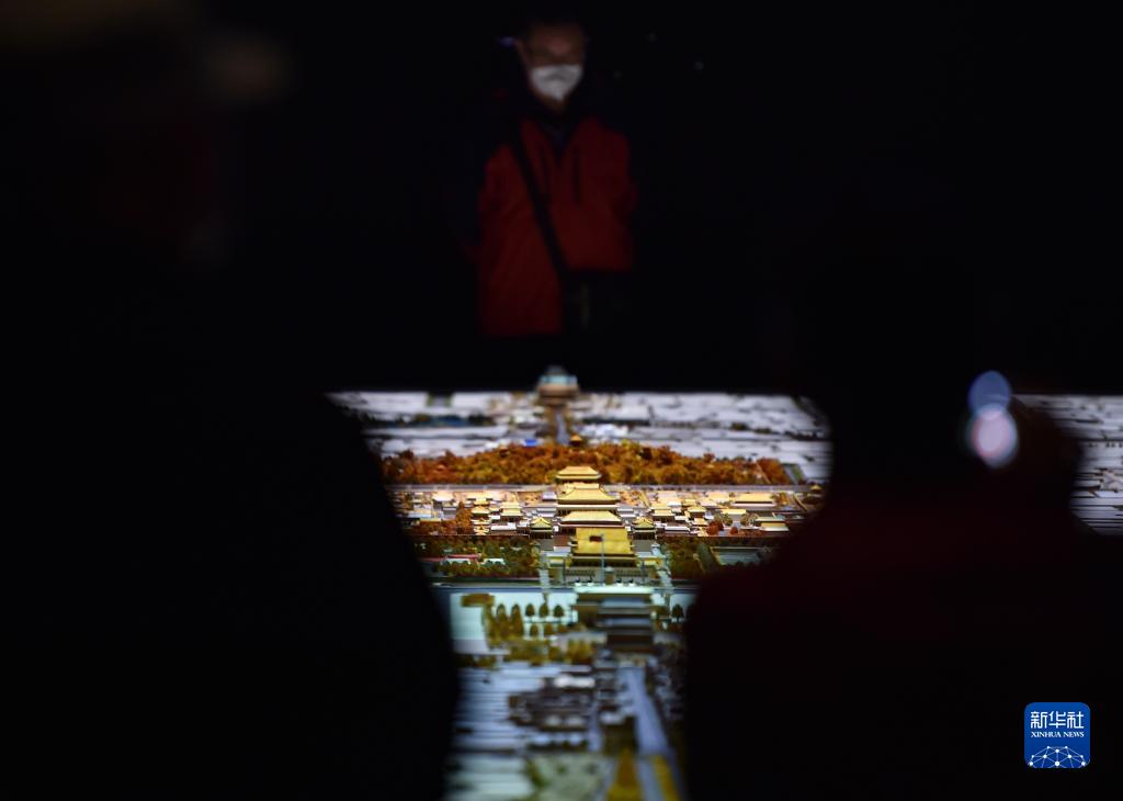 3月28日,觀(guān)眾在觀(guān)看北京中軸線(xiàn)沙盤(pán)。