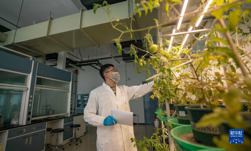 3月28日,南開(kāi)大學(xué)—滄州渤海新區綠色化工研究院課題組工作人員在查看施用新型緩釋肥料后的西紅柿秧苗生長(cháng)情況。