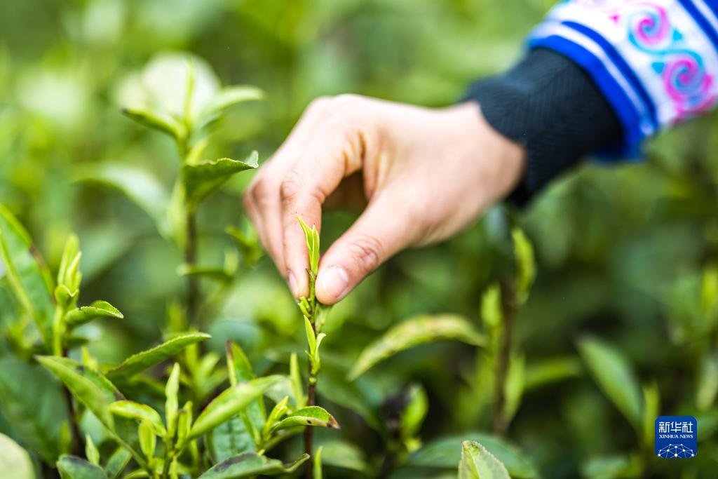 3月28日,茶農在貴州省畢節市百里杜鵑管理區一茶場(chǎng)采摘明前茶。