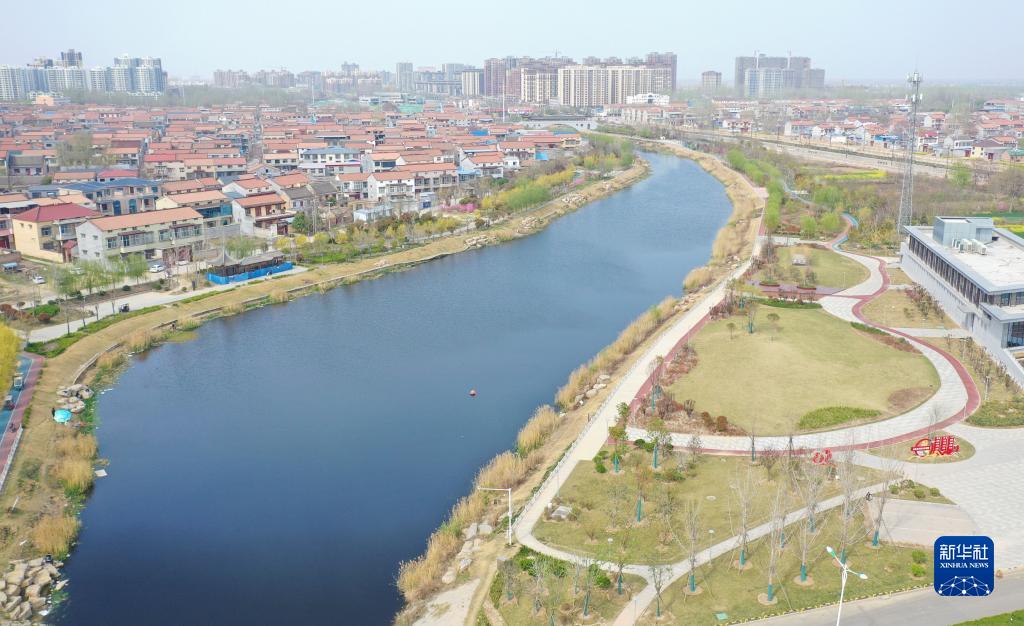 這是3月28日在河南省商丘市睢縣拍攝的利民河公園(無(wú)人機照片)。
