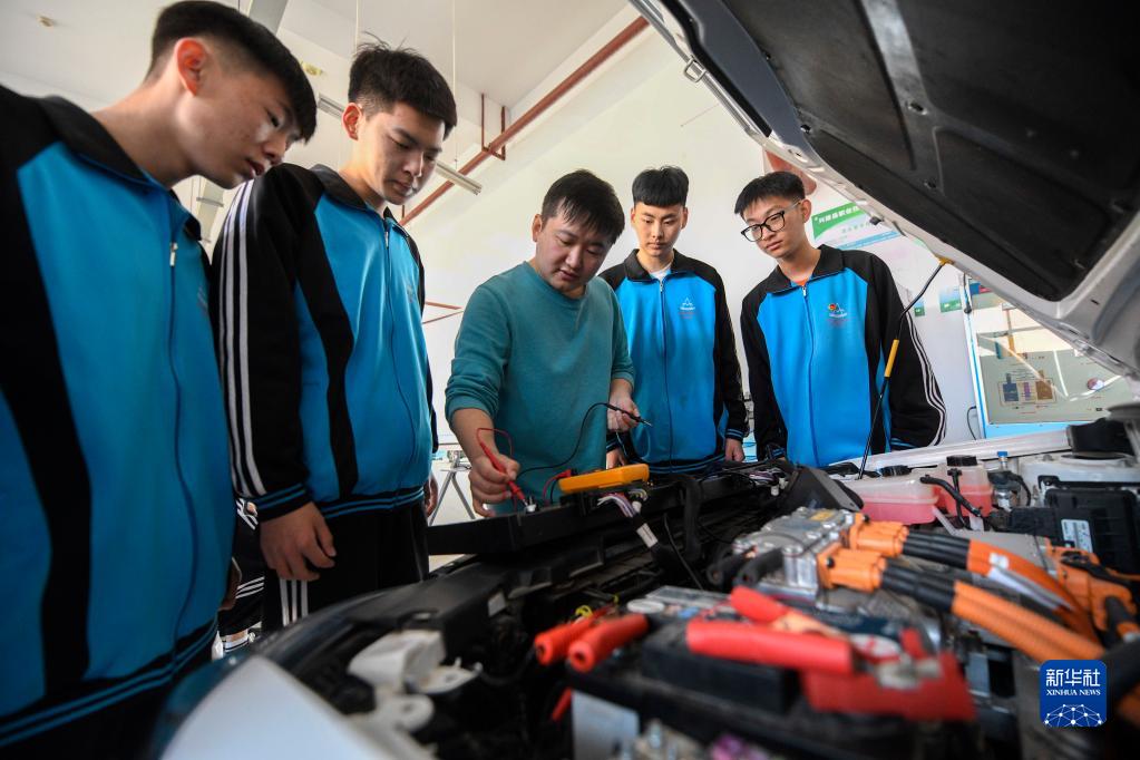 3月28日,在興隆縣職教中心,學(xué)生在進(jìn)行新能源汽車(chē)維修實(shí)訓。