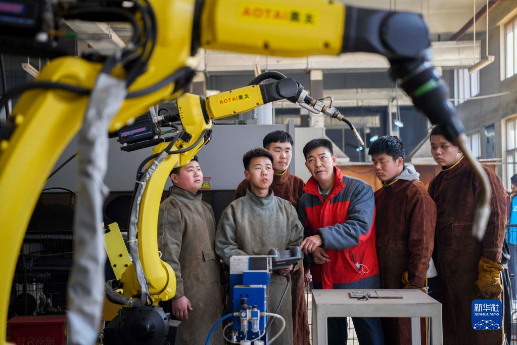 3月28日,在興隆縣職教中心,學(xué)生在進(jìn)行機器人焊接實(shí)訓。