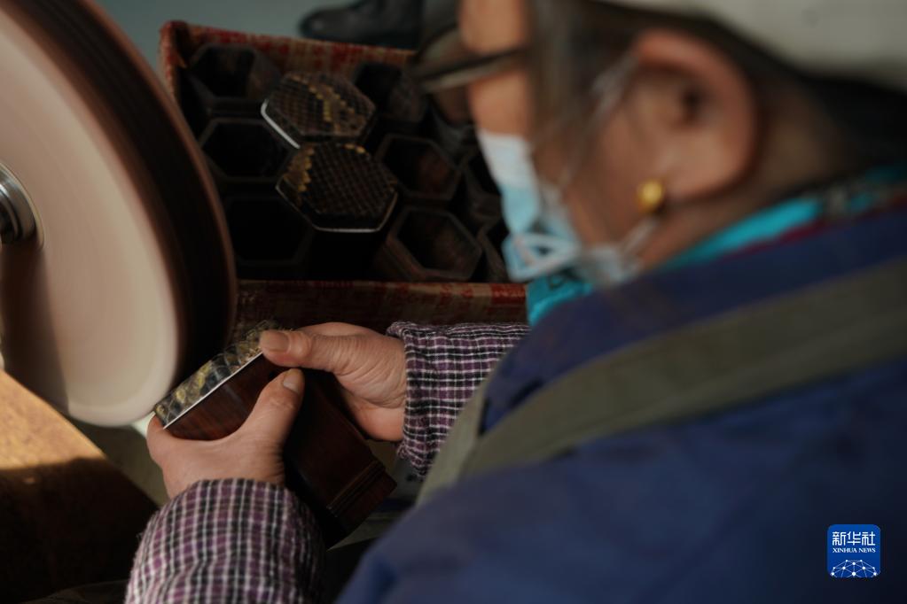 3月28日,工人在江蘇無(wú)錫梅村街道二胡產(chǎn)業(yè)園古月琴坊車(chē)間拋光琴筒。