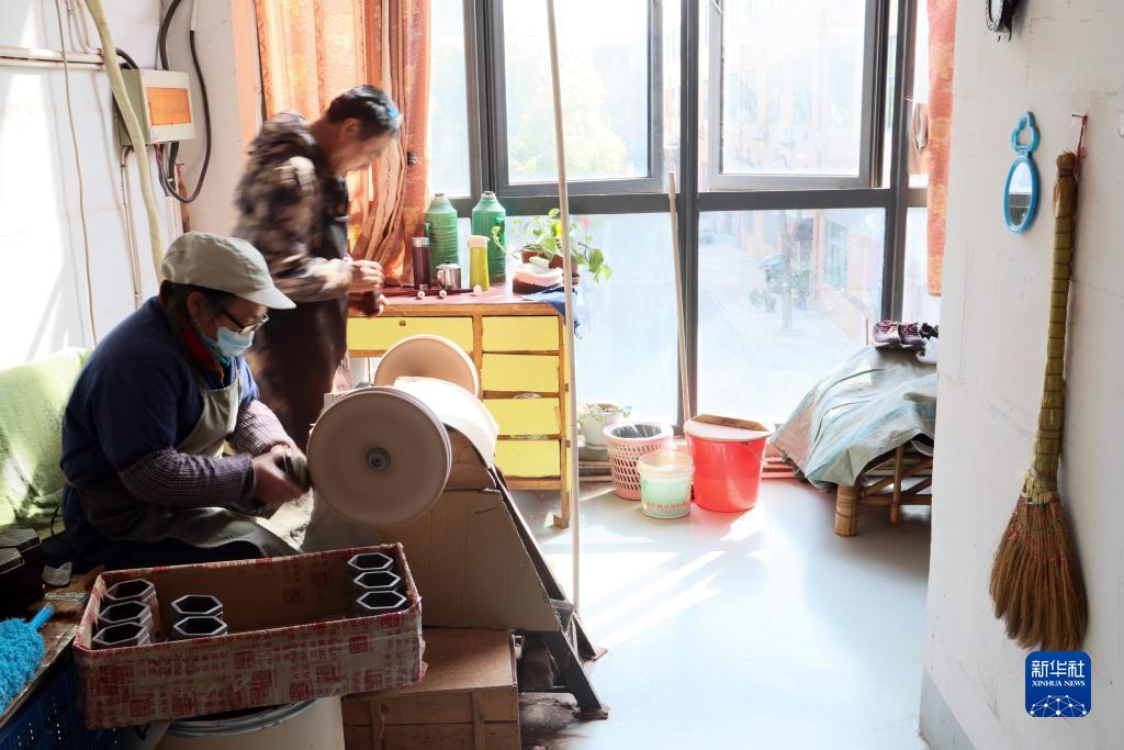 3月28日,在江蘇無(wú)錫梅村街道二胡產(chǎn)業(yè)園,工人在拋光琴筒。
