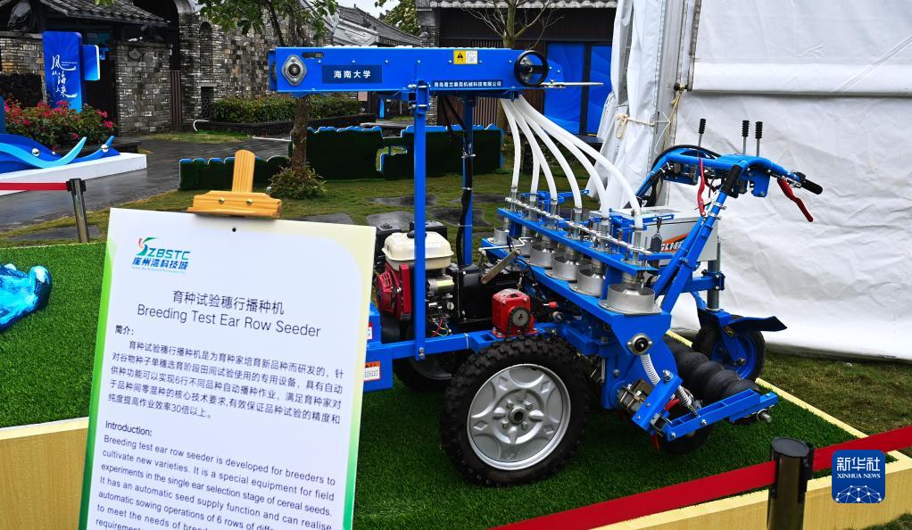 這是3月28日在三亞創(chuàng )新發(fā)展主題展上拍攝的育種試驗穗行播種機。