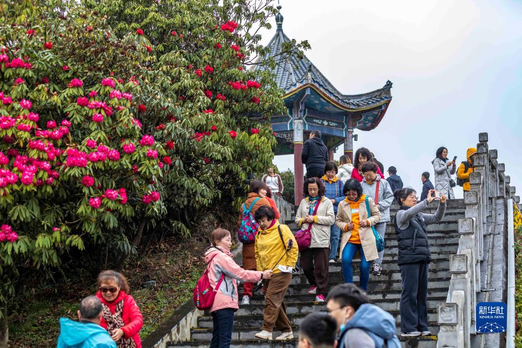 3月28日,游客在貴州省畢節市百里杜鵑管理區普底景區賞花游玩。