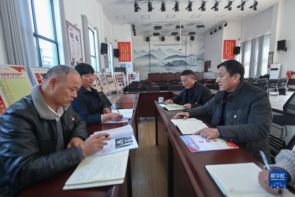 3月28日,在杭州市臨安區昌化鎮石鋪村黨群服務(wù)中心,石鋪村黨員網(wǎng)格長(cháng)(右一、右二)向石鋪村兩委班子反饋本月走訪(fǎng)農戶(hù)情況。