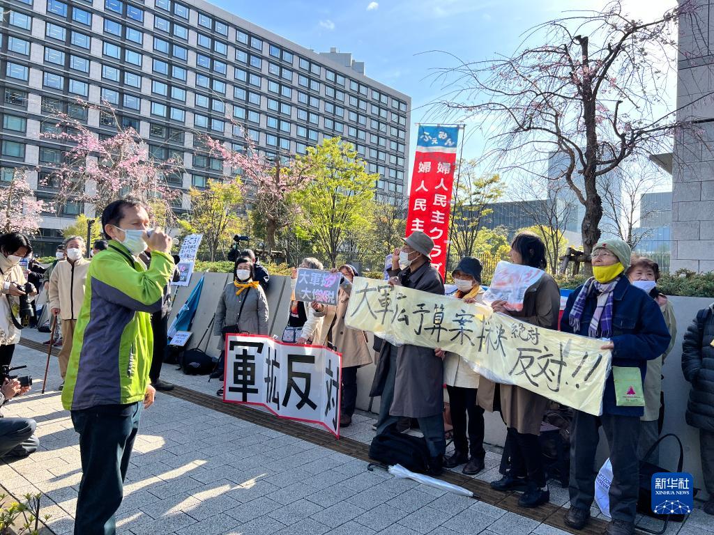 3月28日,日本民眾在參議院議員會(huì )館前舉行抗議活動(dòng),反對參議院當天通過(guò)“軍備擴張預算”案。