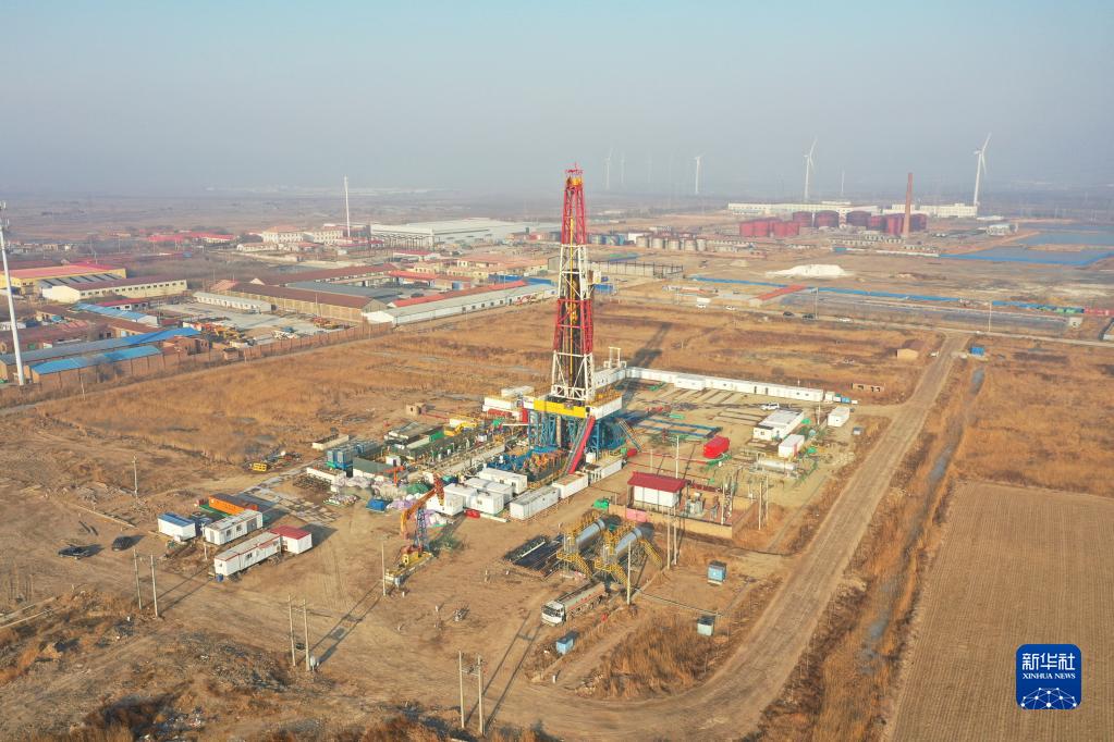 這是滄東凹陷5號平臺一口鉆井在進(jìn)行投產(chǎn)前測試(無(wú)人機照片,2023年2月8日)。