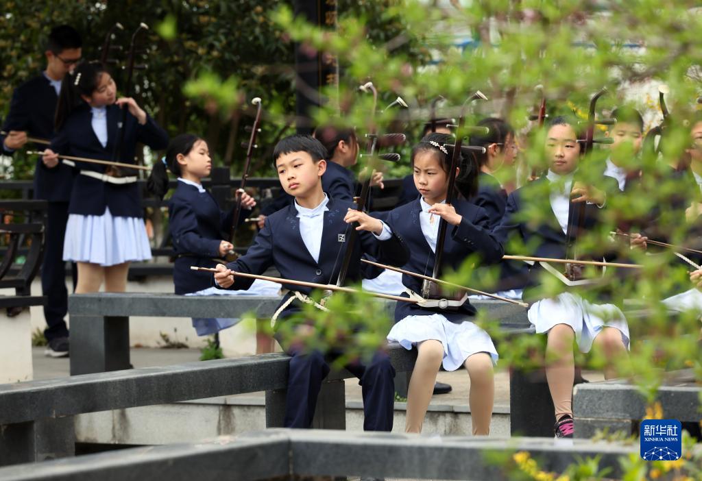 3月29日,江蘇無(wú)錫梅村實(shí)驗小學(xué)學(xué)生集體演奏二胡。