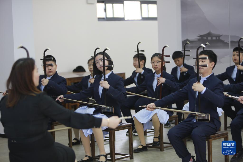 3月29日,無(wú)錫市梅村實(shí)驗小學(xué)學(xué)生在二胡課上練習。