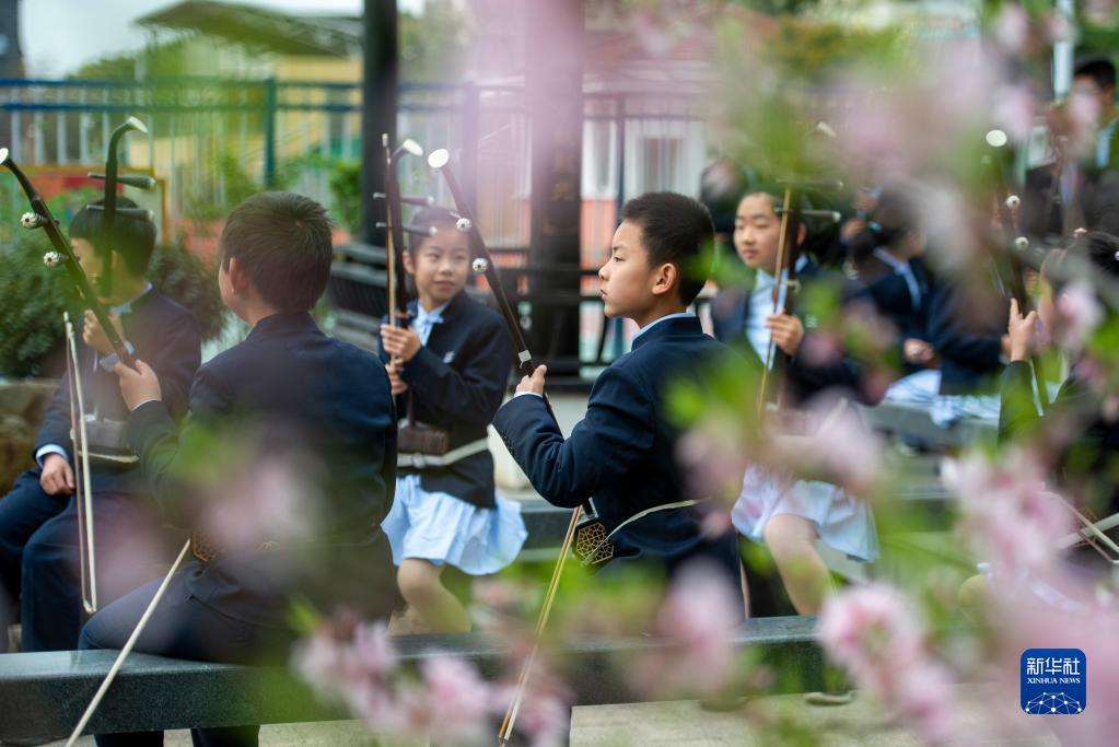 3月29日,在江蘇無(wú)錫梅村實(shí)驗小學(xué),學(xué)生們準備練習二胡。