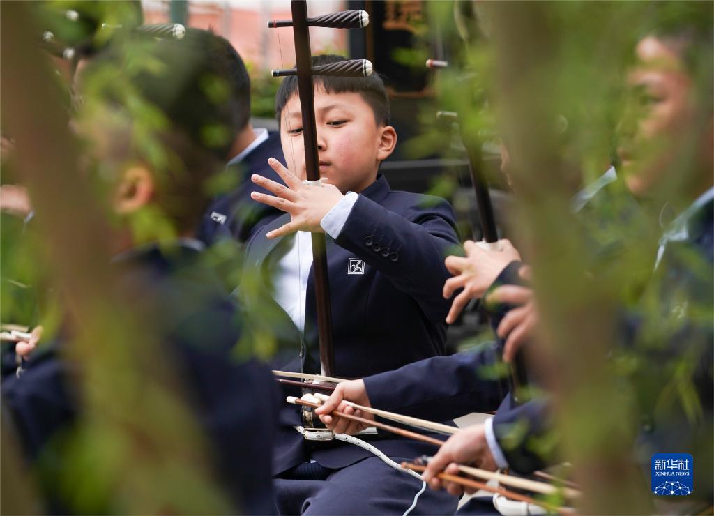 3月29日,江蘇無(wú)錫梅村實(shí)驗小學(xué)學(xué)生在演奏二胡。