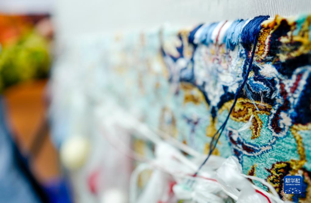 這是3月21日拍攝的正在編織中的閬中絲毯。