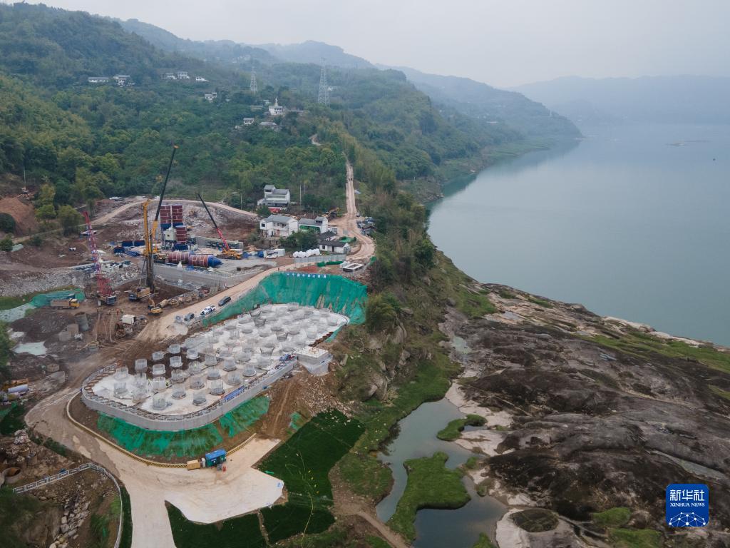 這是在重慶市涪陵區拍攝的石沱長(cháng)江大橋南岸主塔的施工現場(chǎng)(3月29日攝,無(wú)人機照片)。