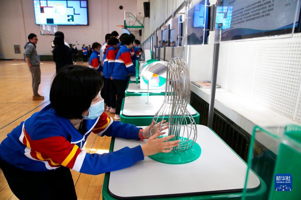 3月29日,中學(xué)生在校園流動(dòng)科普巡展中體驗趣味科學(xué)裝置。