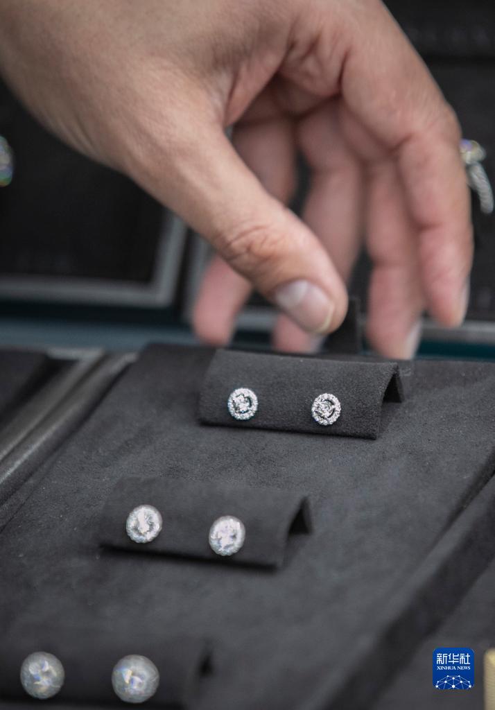3月29日,參展商在以色列拉馬特甘的鉆石展現場(chǎng)展示鉆石。