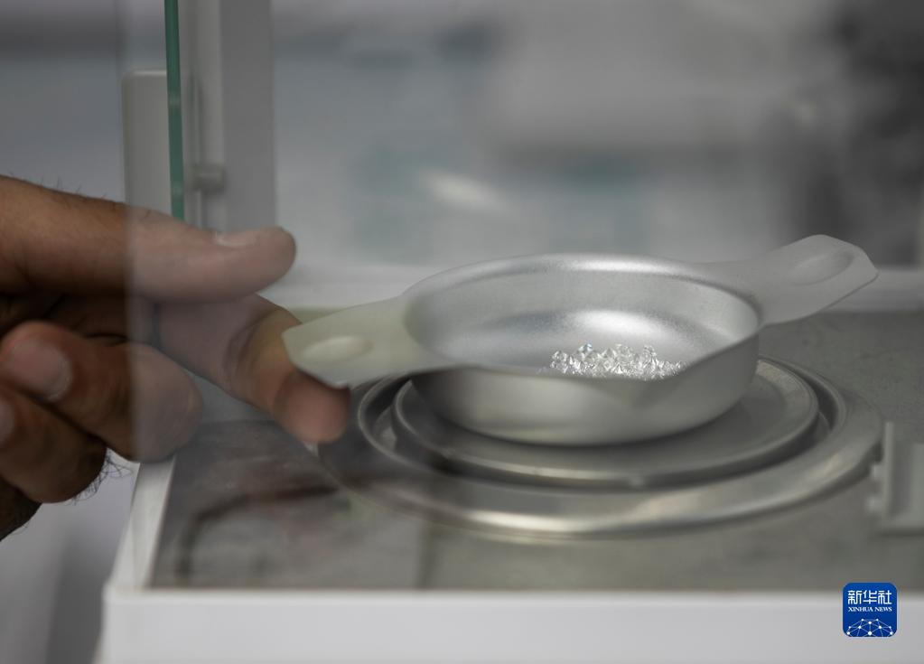 3月29日,參展商在以色列拉馬特甘的鉆石展上為鉆石稱(chēng)重。