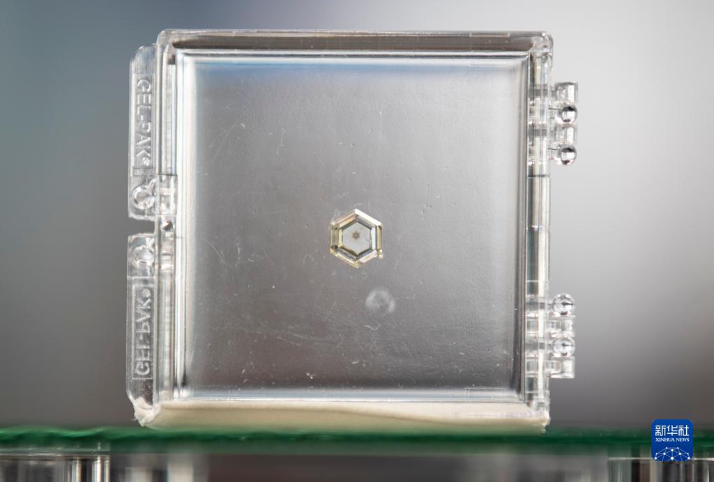 這是3月29日在以色列國際鉆石展上拍攝的一顆鉆石。