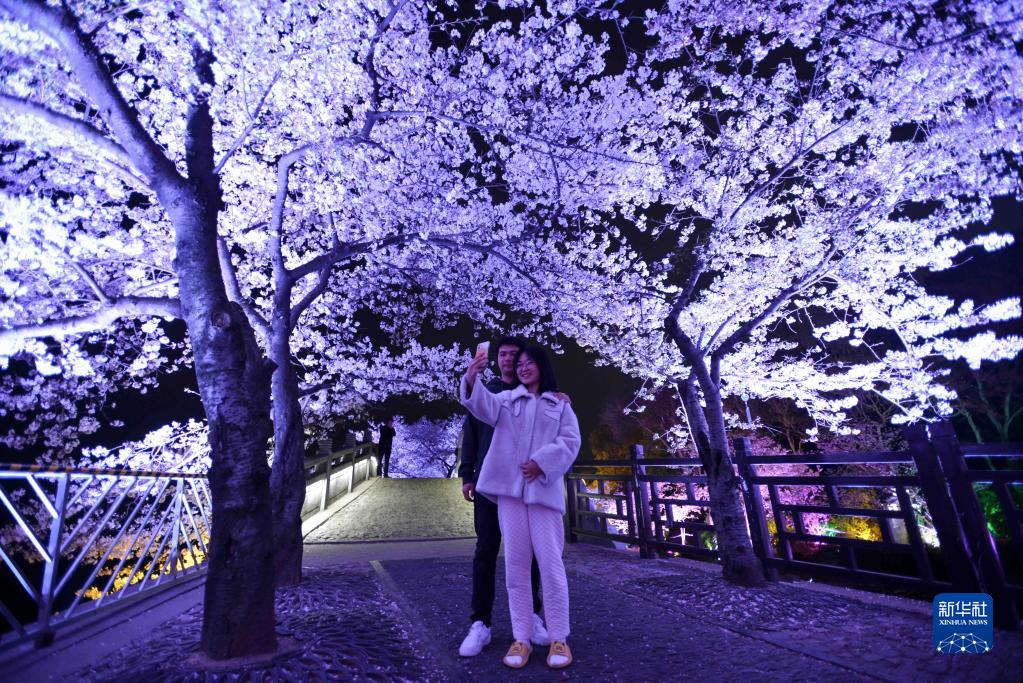 近日,江蘇無(wú)錫太湖黿頭渚景區里櫻花盛放,許多游客選擇夜賞櫻花,感受春天的浪漫。